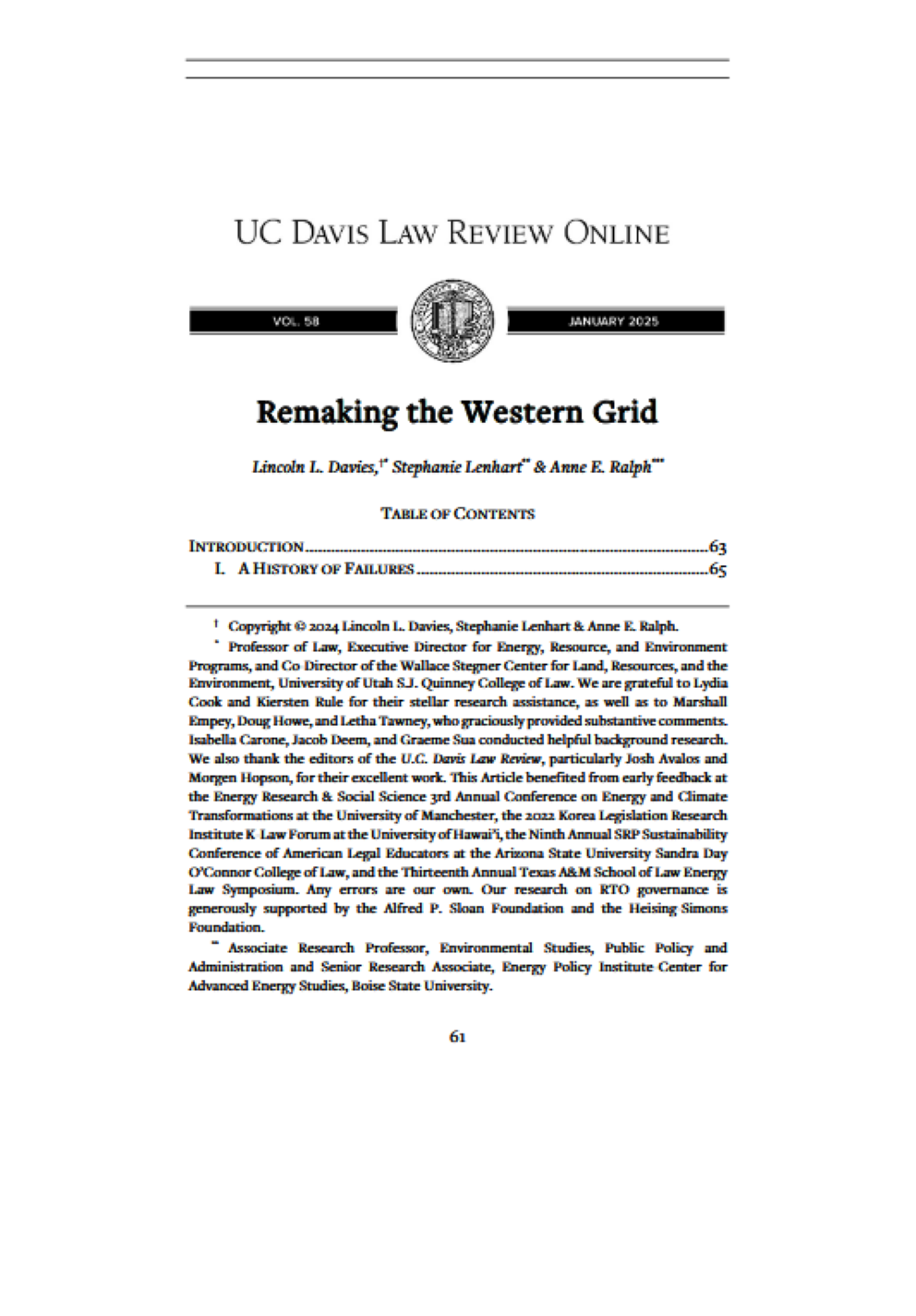 Lincoln L. Davies, Stephanie Lenhart & Anne E. Ralph